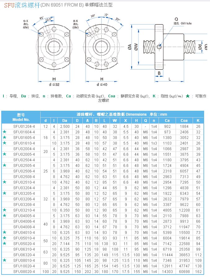 SFU滾珠螺桿(DIN 69051 FROM B) 單螺帽法蘭型