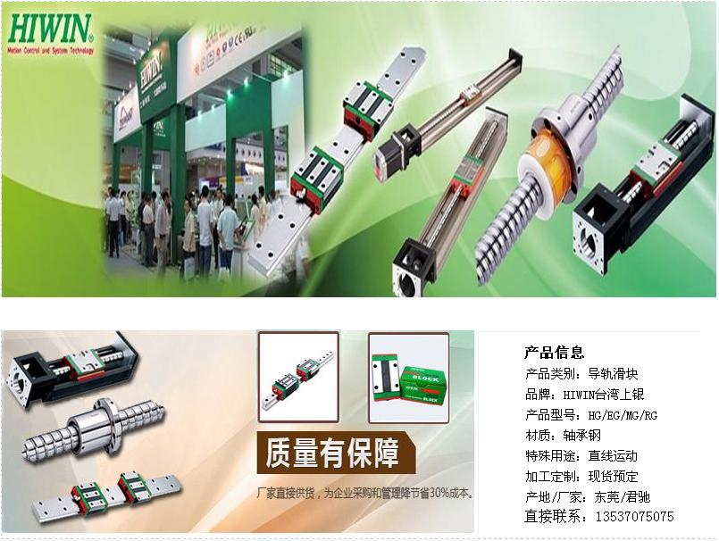 滾珠絲桿,KK模組,等自動化傳動設(shè)備及國定測,極限軌道,模組配件,直線軸承等。本公司所銷售產(chǎn)品一律原裝正品,假一賠十。東莞市君馳機電設(shè)備有限公司大量現(xiàn)貨供應(yīng)上銀HIWIN直線導(dǎo)軌(總代理)原裝HIWIN臺灣線性導(dǎo)軌HGH,HGW,EGH,EGW,MGN,MGW 滑塊線性滑軌滑塊/微型導(dǎo)軌/HIWIN靜音式線性導(dǎo)軌/HIWIN滾柱式直線導(dǎo)軌/HIWIN線性滑塊/HIWIN靜音式線性滑軌上銀HIWIN * 華南總經(jīng)銷。高組裝系列:HGH-CA /HA,HGW-CA/HA 規(guī)格大。15~65;上銀低組裝系列:EGH-SA/CA,EGW-SA/CA 規(guī)格大。15~30 微型系列:MGN-C/H,MGW-C/H 規(guī)格大。7~15 * 上銀高組裝方形型號:HGH15CA HGH20CA HGH20HA HGH25CA HGH25HA HGH30CA HGH30HA HGH35CA HGH35HA HGH45CA HGH45HA HGH55CA HGH55HA HGH65CA HGH65HA * 上銀高組裝法蘭形型號:HGW15CA HGW20CA HGW20HA HGW25CA HGW25HA HGW30CA HGW30HA HGW35CA HGW35HA HGW45CA HGW45HA HGW55CA HGW55HA HGW65CA HGW65HA * 上銀高組裝法蘭形下鎖式型號:HGW15CB HGW20CB HGW20HB HGW25CB HGW25HB HGW30CB HGW30HB HGW35CB HGW35HB HGW45CB HGW45HB HGW55CB HGW55HB HGW65CB HGW65HB * 上銀高組裝法蘭形上下鎖式型號:HGW15CC HGW20CC HGW20HC HGW25CC HGW25HC HGW30CC HGW30HC HGW35CC HGW35HC HGW45CC HGW45HC HGW55CC HGW55HC HGW65CC HGW65HC * 上銀低組裝方形上鎖式型號:EGH15SA EGH15CA EGH20SA EGH20CA EGH25SA EGH25CA EGH30SA EGH30CA * 低組裝法蘭形上鎖式型號:EGW15SA EGW15CA EGW20SA EGW20CA EGW25SA EGW30SA EGW30CA * 上銀低組裝法蘭形下鎖式型號:EGW15SB EGW15CB EGW20SB EGW20CB EGW25SB EGW25CB EGW30SB EGW30CB * 上銀微型導(dǎo)軌型號:MGN7C MGN7H MGN9C MGN9H MGN12C MGN12H MGN15C MGN15H MGW7C MGW7H MGW9C MGW9H MGW12C MGW12H MGW15C MGW15H臺灣上銀直線導(dǎo)軌HGL25CA,臺灣上銀線性滑塊HGL5CA,臺灣上銀。東莞上銀導(dǎo)軌,上銀直線導(dǎo)軌,上銀KK模組,上銀滾珠絲杠 等傳動設(shè)備,假一賠十!