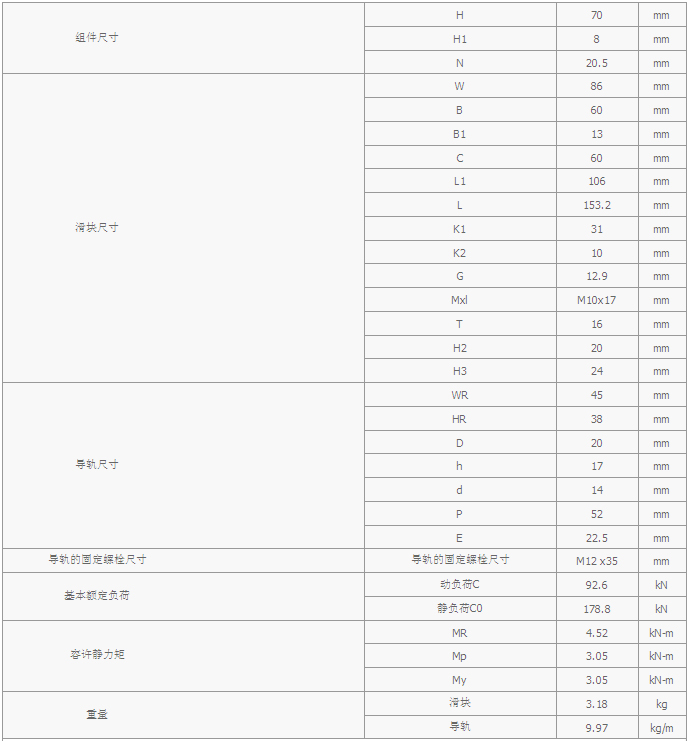 臺灣上銀導(dǎo)軌RGH45CA,RGH45HA臺灣上銀品牌組件規(guī)格尺寸: